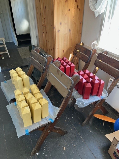 Även om riskörning fortfarande är ett prioriterat område och där vi nu kan börja se slutet på aktiviteterna på gamla banan så finns det en hel del att ta hand om på nya banan. Den här dagen fick vi dock fördela gracerna lite med tanke på att vi inom kort kommer att öppna gamla banan. Det innebar att några fixade med plattor under soffan på hål 14 som nu har fått en ny plats efter ombyggnaden av tee. Några tog hand om resterande ris på hål nummer 5 och runt klubbhuset fixades det med markteglet som tvättades och så lades det ut ny sättsand. Hantverksgruppen rev ned räcket på bron på hål 2 och snart kommer det upp nytt räcke där. Bord och stolar kom på plats på altanen och och teemarkeringar fick sig en välbehövlig ommålning.