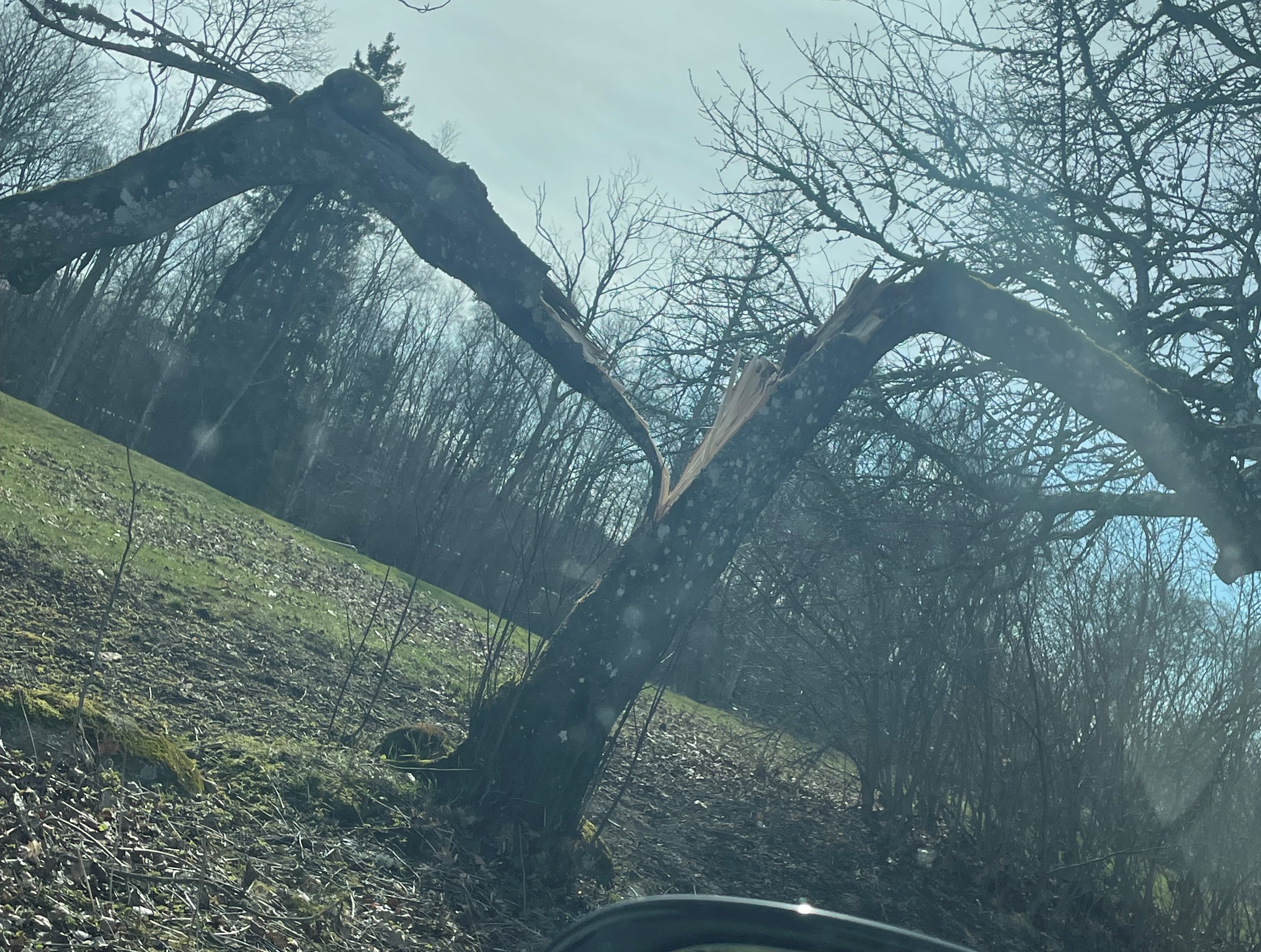 Det rör sig om ett stort antal träd som behöver sågas upp och transporteras bort. Arbetet är både tids- och resurskrävande, vilket innebär att det ordinarie banarbetet tillfälligt får stå tillbaka medan vi fokuserar på röjningsarbetet. Som tur är har fastigheter och övriga anläggningar klarat sig utan skador, något banchefen är mycket tacksam för.