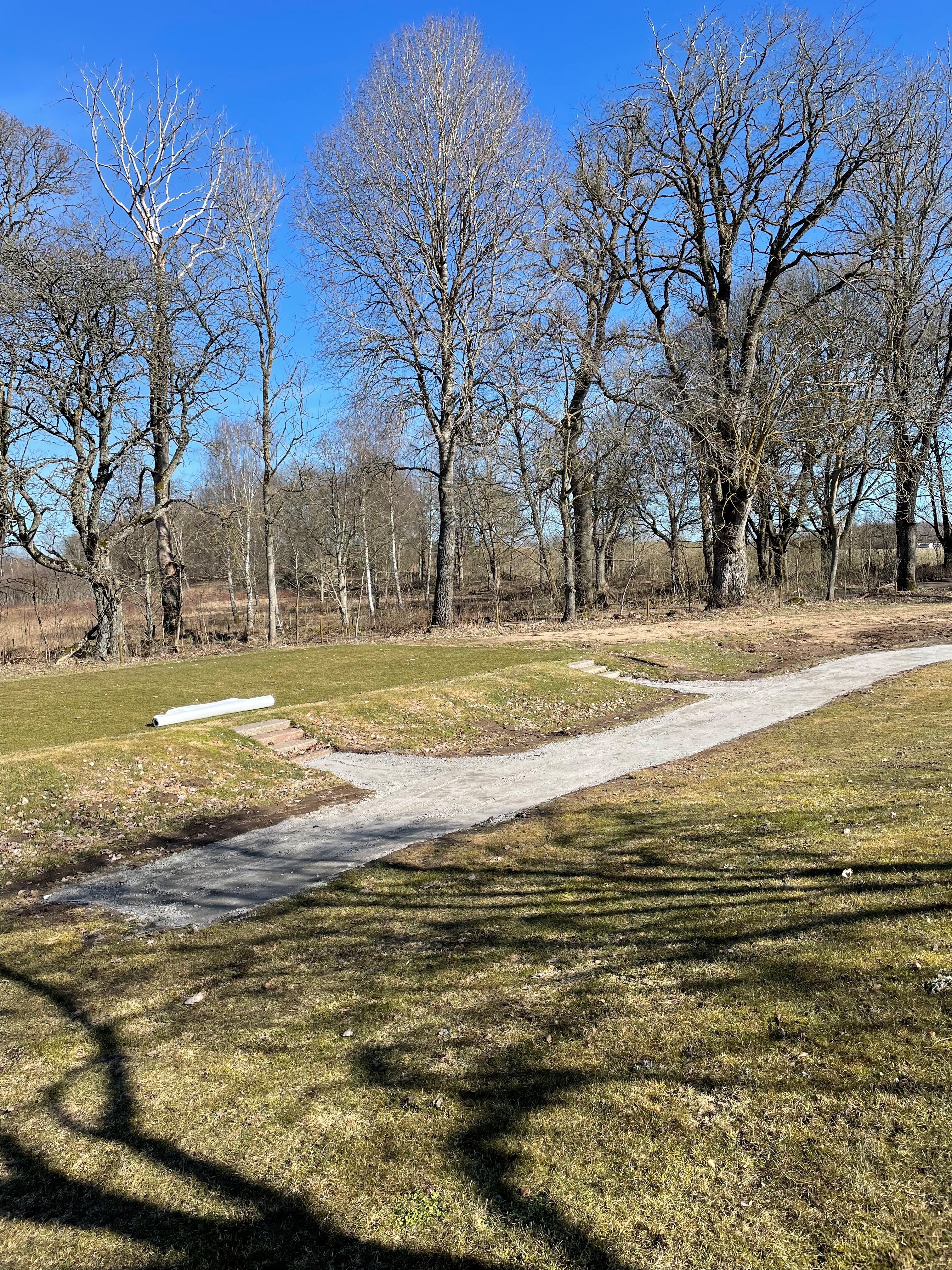 Arbetet med vägen på hål 14 är nu klart. Vägen löper parallellt med tee och bidrar till både bättre tillgänglighet och ett mer strukturerat område.