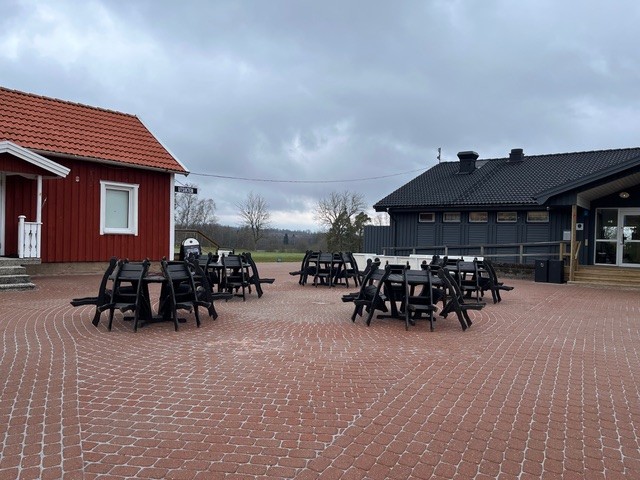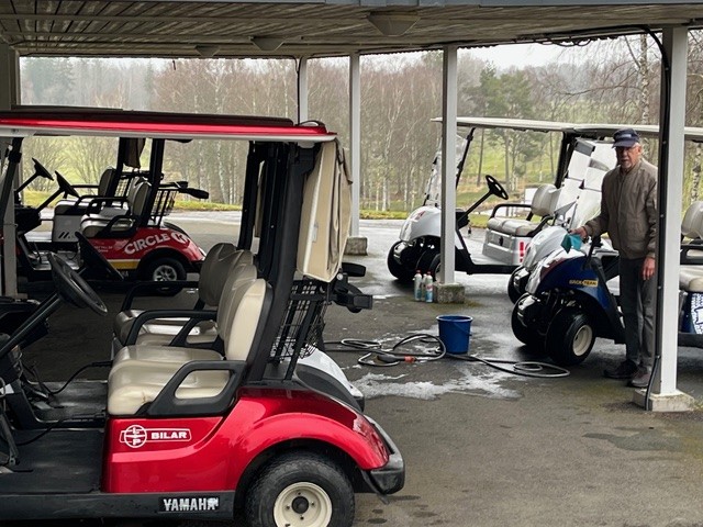 Runt klubbhuset hissades flaggorna efter att flaggstängerna tvättats (så långt vi nådde) och dessutom är alla utemöbler på plats framför klubbhuset. Golfbilarna fick alla sig en tvättning och allmän uppsnyggning.