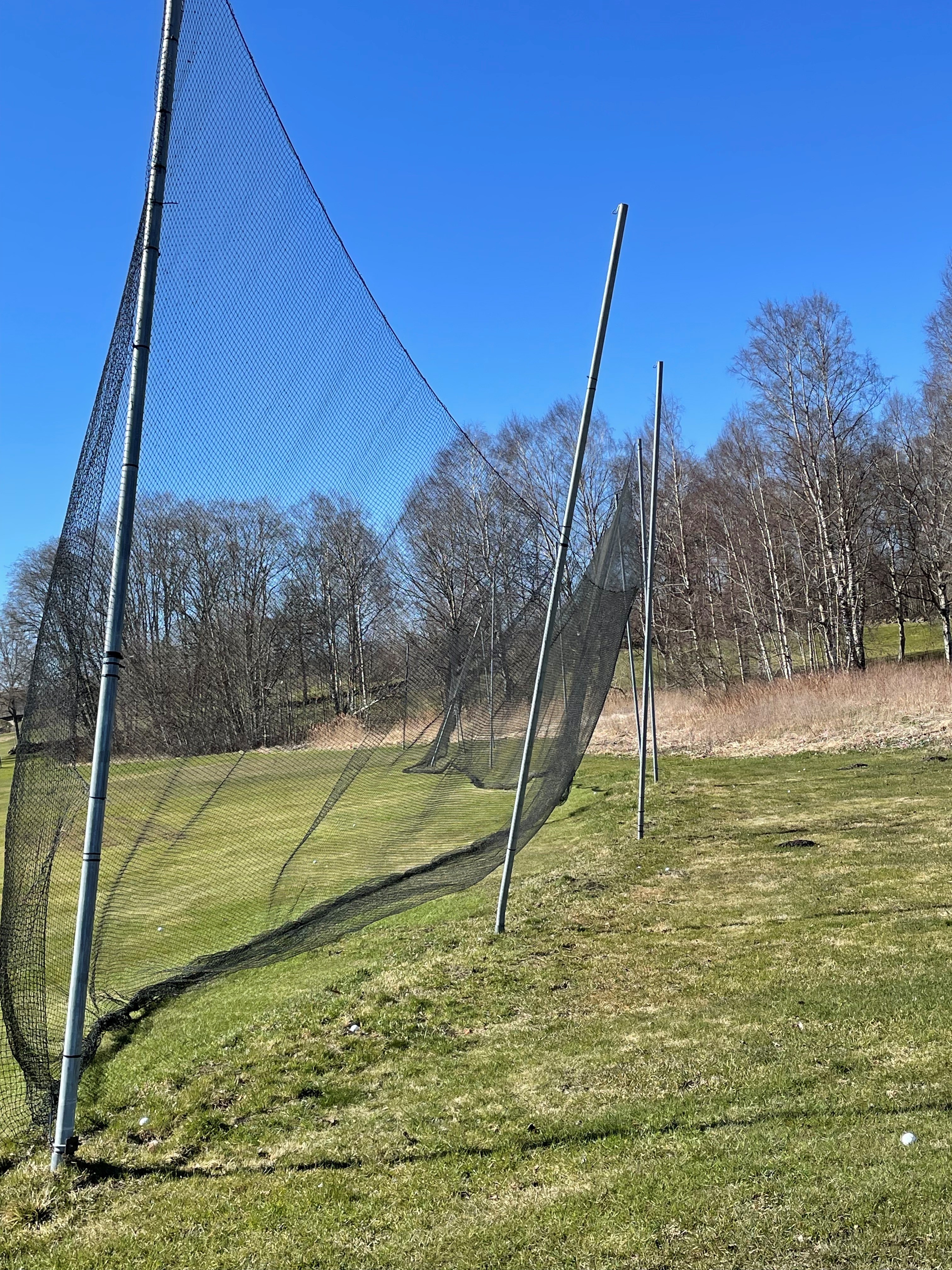Eftersom stormen Dave ställde till det lite i planeringen har banarbetarna fått jobba lite mot klockan skulle man kunna säga. Cirka 200h har de lagt bara på att röja efter stormen. Och tyävrr finns det lite kvar att göra. Men det primära var att få bort det som kunde tänkas vara i vägen för golfarna, rensa och röja på spelytor. Tyvärr fick nätet på drivingrannge sig en törn (se bild nedan) så det kommer vi behöva att åtgärda inom kort. Om vi kommer behöva stänga rangen tillfälligt eller inte kommer det informeras om.