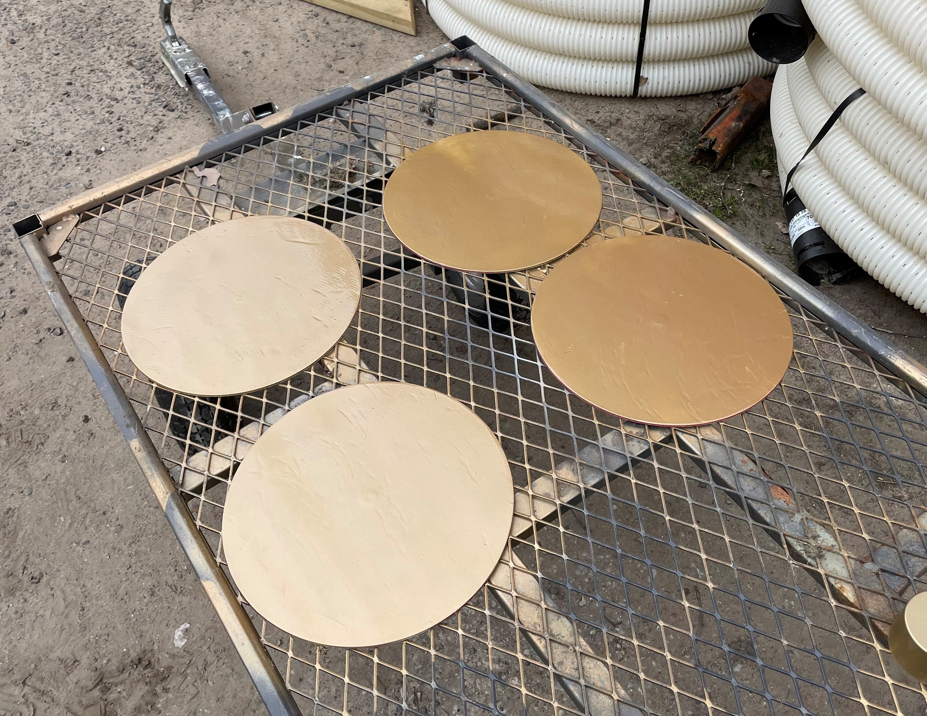 Eftersomm vi numera komemr att ha robotar som traskar omkring på iallafall 9 hål av 18 på 18-hålsbanan så kommer vi vara tvungna att ta bort de provisoriksa teeskyltarna vi hade förra året. Robotarna komemr köra på dom och det kommer då skapa stora problem. VI måste därför i dagsläget gå tillbaka till plattor men vi har nu istället gjort större plattor så de ska synas bättre (Se bild nedna). Guldtees är en uppklippt yta i fairwayhöjd och detta projekt är att skapa riktiga Guldtees ligger med i klubbens masterplan.