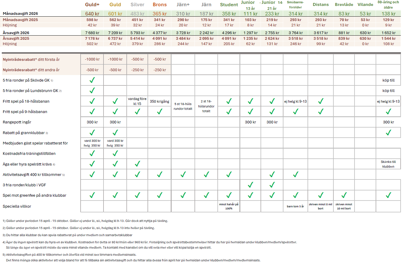 Här ser du en översikt av klubbens medlemskap som gäller för 2026. Inom kort kommer en detaljerad vy för varje medlemskap.